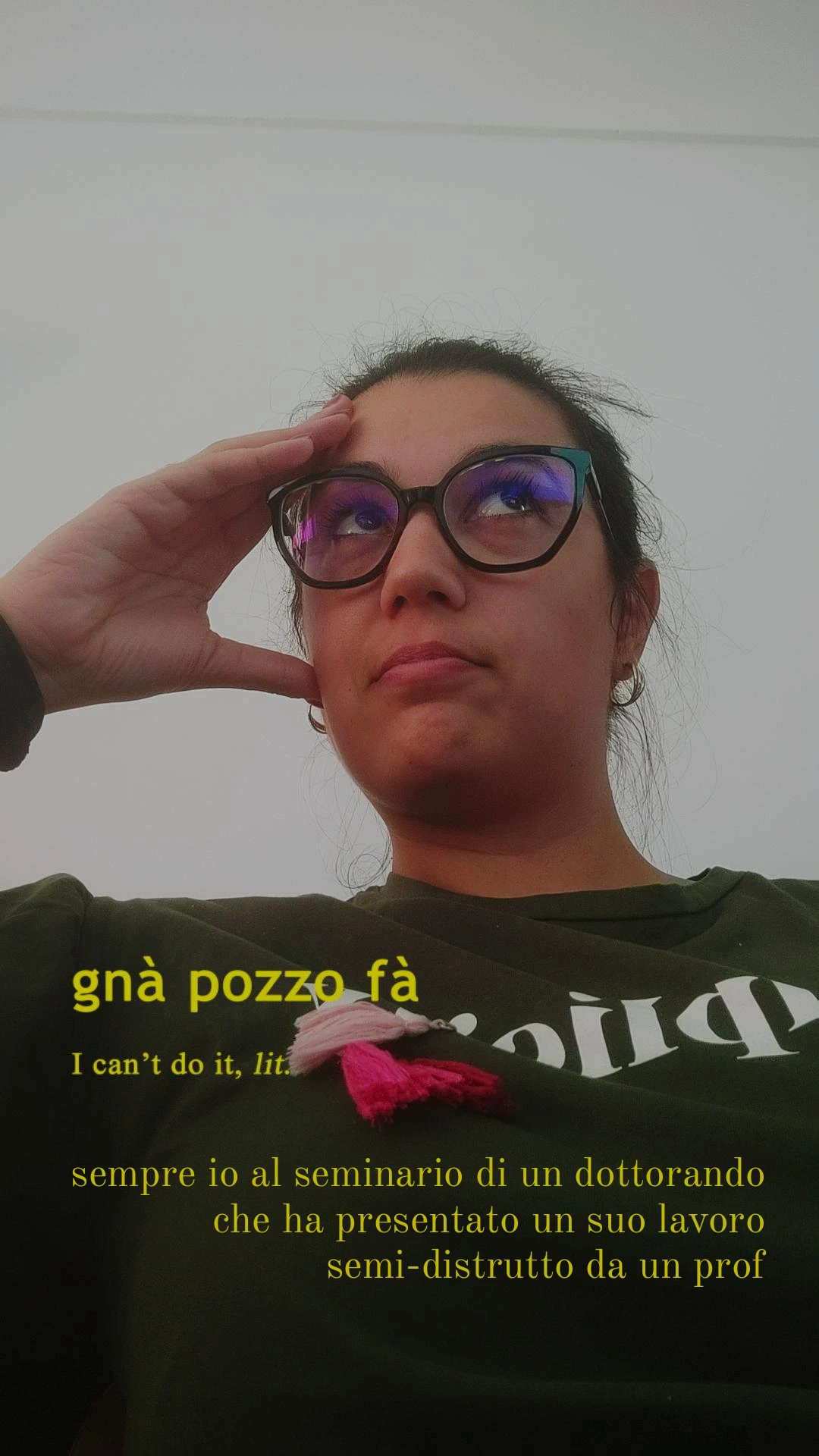 Della presentazione di Davide e del suo "me lo possono affossare basta che me lo accetta una rivista" che mi è proprio piaciuta come filosofia, credo che la riutilizzeró anche per me stessa, e del suo essere sempre così leggero anche nei momenti seri